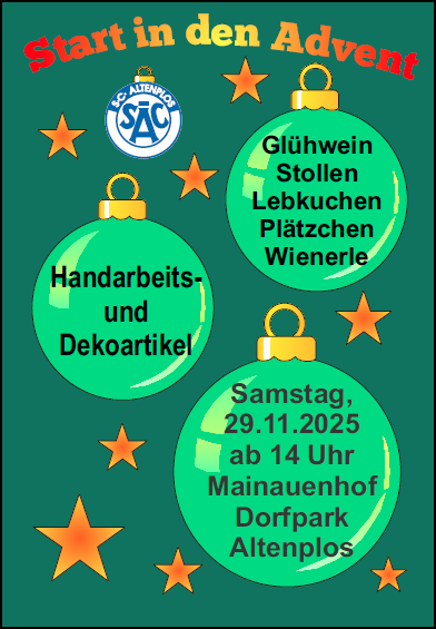 +++ NORDIC WALKING: Ab Dienstag, 28.10.25: WINTERLAUFZEIT! Wir starten aufgrund der Lichtverhältnisse bereits um 15:00 Uhr +++ FUßBALL: So. 09.11. – 12:00 Uhr – Unsere Erste Mannschaft gewinnt überzeugend beim TSV Obernsees mit 5:1. – Ebenso gewinnt unsere Zweite bei der SG Kirchahorn II/Waischenfeld II/Pottenstein II mit 2:1 +++ KINDERTURNEN: Seit dem 09.01.2025 wieder im Angebot !!! +++ SPORTHEIM: Die aktuellen Öffnungszeiten seht ihr per Klick auf: Öffnungszeiten-Sportheim +++ SCA: Abonniere den SCA-Newsletter und erhalte alle aktuellen Informationen – ab 30 Abonnenten wird er zu aktuellen Informationen versendet +++